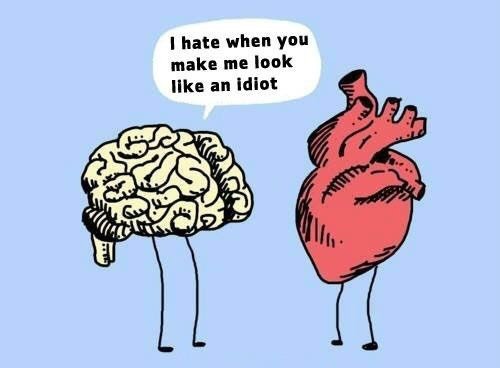 في بداية حياتنا تغلبنا العاطفة بشكل حتمي، لأننا نولد بها، توجهنا بشكل كامل. مع التقدم في السن وحضور التجارب، يعلن العقل عن وجوده، ويربط اندفاع العاطفة، يحدث التصارع بينهما، لكن العقل غالبًا يربح، أو يثبت وجهة نظره لاحقاً فنصحح الخطأ. طبيعة العاطفة الاندفاع والعمى، والعقل يتخذ قراره بشكل تحليلي وقياسي (نسبة للقياس)، العاطفة تقليدية (نسبة للتقليد) وغيورة، تحاول محاكاة تجارب الآخرين، دون حساب المخاطر، أنانية وتريد إشباع اندفاعًا ما، على حساب شيءٍ ما. العاطفة تأخذ تجربة الأمس، والعقل يفكر بنتيجة الغد.